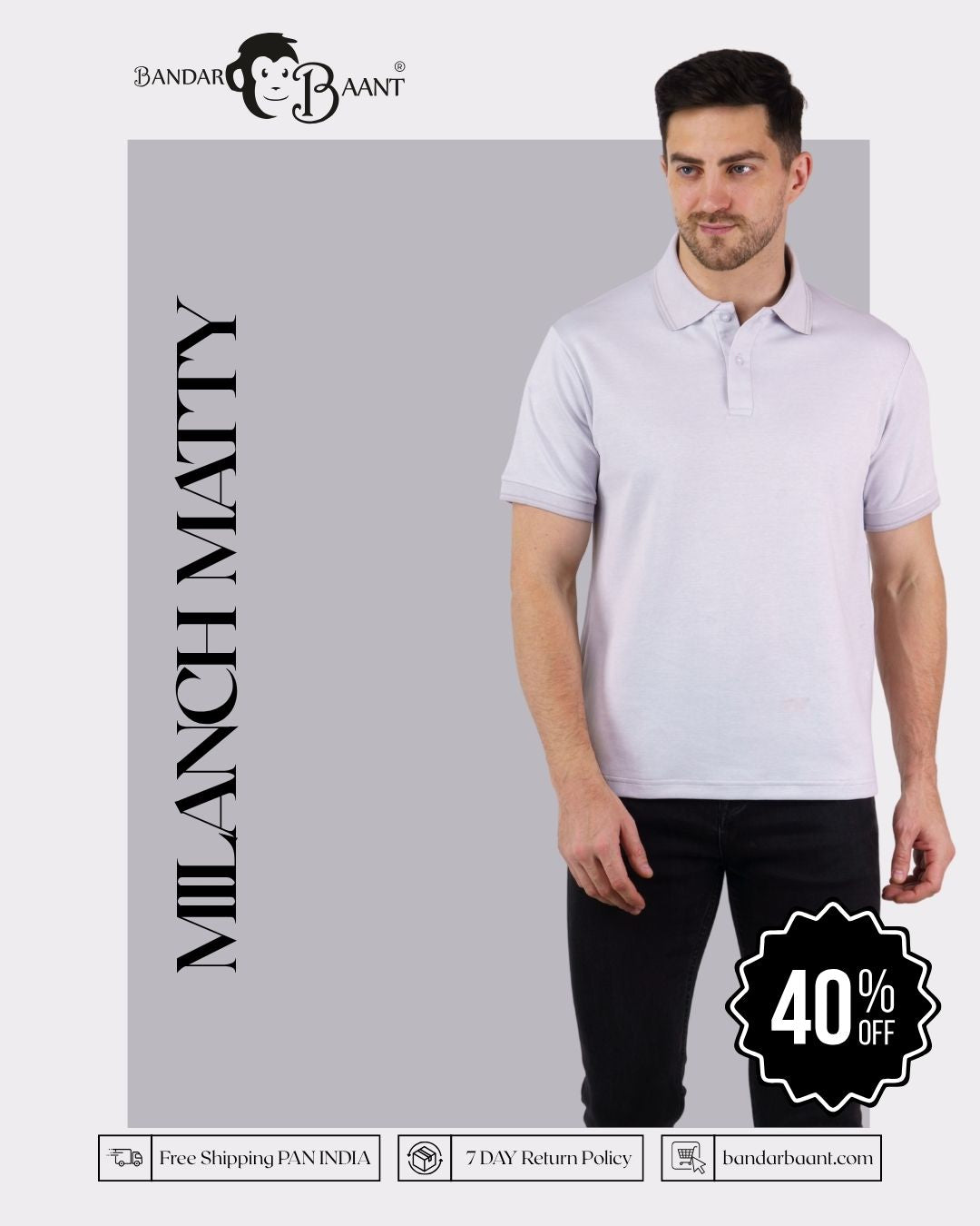 Designed in a regular fit, this Milanch Matty premium fabric T-Shirt for Men allows ease of movement without appearing loose. The structured silhouette ensures a professional look, while the breathable cotton matty fabric keeps you comfortable during long work hours. It is easy to maintain, retains its texture after multiple washes, and resists losing shape over time.
